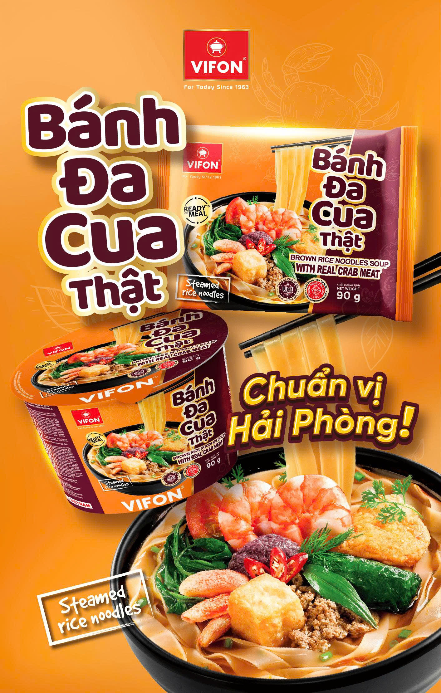Hoàng gia bánh đa cua VIFON 120g – bánh đa cao cấp, đậm vị cua, sợi dai ngon
