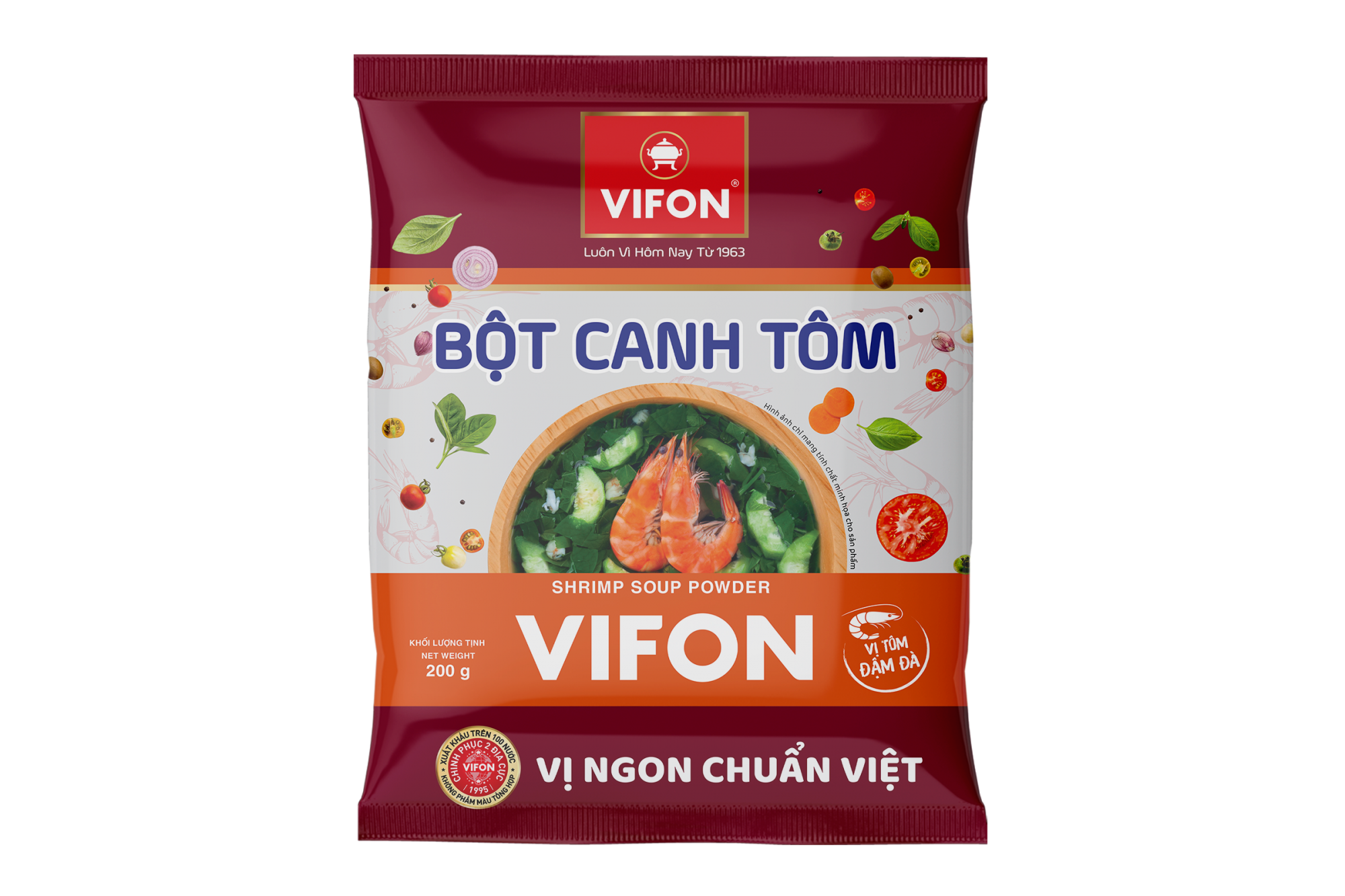 Với sự kết hợp tinh tế giữa các gia vị cần thiết có bổ sung thêm tỏi, ớt, tiêu và hành lá sấy khô. Bột Canh VIFON mang đến bữa ăn ngon mà còn đảm bảo sức khỏe cho cả gia đình.