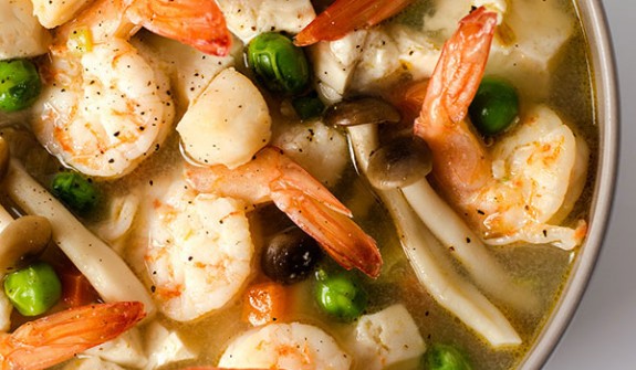 B3: Tôm bóc vỏ, khứa lưng bỏ chỉ đen. Mực làm sạch, thái khoanh