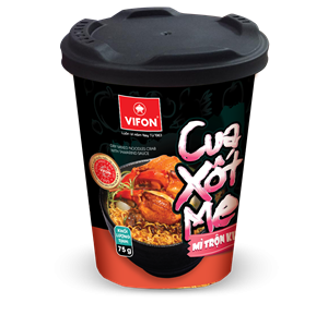 Dry Mixed Noodles Crab With Tamarind Sauce with convenient lid for gourmet to drain water. Crispy noodles are processed by a modern closed process, without synthetic color combined with a packet of sweet and sour crab sauce.