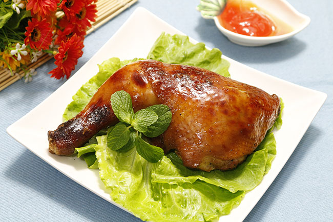 + Use the foil wrapped around the chicken and put it in the oven at 200 degrees for 15 minutes + Then remove the chicken from the foil, continue to spread the mixture of VIFON soy sauce on the chicken and grilled at 180 degrees until the meat turns brown.