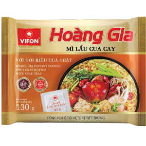 With a commitment not to use synthetic colorants, produced with modern processing technology and a closed process, Hoang Gia Instant Noodle Spicy Crab Hotpot with 100% pure and fresh crab, packaged by closed modern sterilized technology, helping to keep the nutritional content in the crab, with crispy noodles, the rich soup will solve the consumer's time problems but still ensure the right nutrition of "Royal". With the perfect combination of the sweet and cool taste of field crab mixed with the spicy taste of hot pot and the fatty taste of noodles, Hoang Gia Instant Noodle Spicy Crab Hotpot With Real Crab 130g is a great choice for convenience meals.