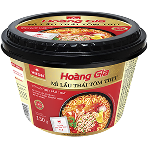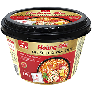 With a commitment not to use synthetic colorants, Hoang Gia Instant Noodle Thai Hotpot is packed with 100% pure and fresh meat, packed with modern sterilization technology, which helps to keep the nutritional content of meat. With crispy noodles, the rich soup will solve the consumer's time problems but still ensure the right nutrition of "Royal" quality. Now, with a bowl-shaped packaging, a combination of the typical sour, spicy taste of Thai hot pot and the rich sweetness of the meat and the sweet taste of shrimp, Hoang Gia Instant Noodle Thai Hotpot With Real Pork 130g is a great choice for convenience meals.