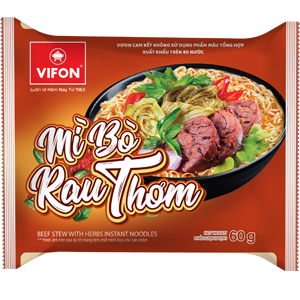 With natural chewy and crispy noodles strands, no synthethic color added. VIFON Instant noodles 60gr products are produced through modern technology, afirming the delicious taste and high quality products.