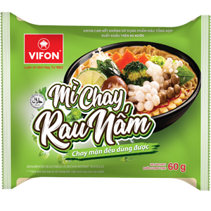 With natural chewy and crispy noodles strands, no synthethic color added. VIFON Instant noodles 60gr products are produced through modern technology, afirming the delicious taste and high quality products.