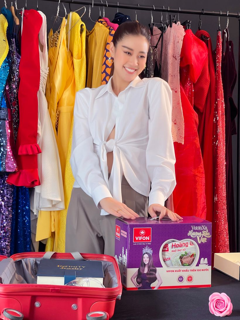 Để đỡ nhớ hương vị quê nhà và tránh tình trạng không quen với thức ăn tại Mỹ, Hoa hậu Khánh Vân còn chuẩn bị thêm Hoàng Gia Phở VIFON với nhiều hương vị khác nhau. Nàng hậu tiết lộ Phở VIFON là món ăn "cứu đói” nhanh chóng cho cô trong những ngày hoạt động căng thẳng và tiết lộ hương vị truyền thống của Phở VIFON khi thưởng thức trên đất khách sẽ giúp xoa dịu nỗi nhớ nhà và vững tin hơn trong hành trình chinh phục vương miện Miss Universe.
