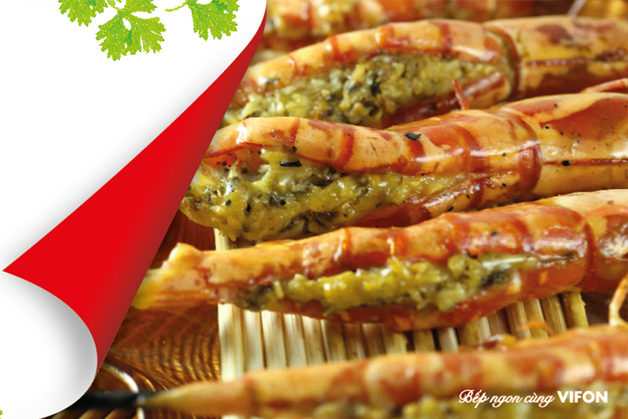 B3 : Trộn tất cả các nguyên liệu còn lại với nhau và nhồi vừa đủ vào lưng tôm (phần còn thừa bạn có thể phết lên mình tôm khi nướng)