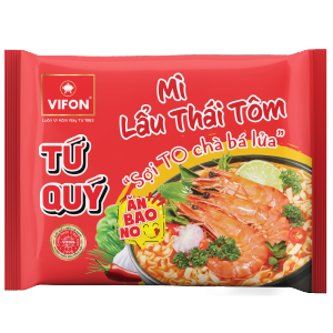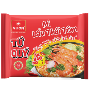 Tu Quy Instant Noodle Thai Hot Pot With Shrimp: ecstatic with the sour taste of Thai hot pot, combined with rich soup and spices, brings a bowl of Thai hot pot noodles with shrimp that stimulates the taste.