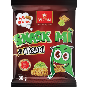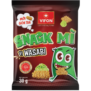 Wasabi Noodles Snack with crispy, spongy noodles, harmonious taste, aroma. With the modern production process, strict quality control and selected ingredients, commitment not to use synthetic colorants, delicious and convenient products can be used directly without processing. while ensuring the health and safety of consumers.
