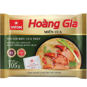 Miến Cua Hoàng Gia của VIFON được sản xuất qua dây chuyền công nghệ hiện đại, không chất bảo quản, không màu tổng hợp. Vắt miến Cua VIFON được tạo nên từ những hạt gạo kết hợp với tinh bột đậu xanh đảm bảo sợi dai, mềm, thơm ngon. Đặc biệt với “túi thịt Cua thật nguyên chất” được chế biến kĩ càng, tiệt trùng ở nhiệt độ cao. Với nước súp đậm đà hương vị cua đặc trưng, các gia vị hấp dẫn, tất cả hòa quyện tạo nên ly Miến cua VIFON thơm lừng bổ dưỡng, là một trong những lựa chọn tiện lợi cho bạn ở bất cứ nơi đâu và bất kỳ lúc nào.