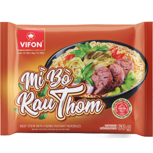 Sợi mì dai giòn tự nhiên, không phẩm màu tổng hợp. Sản phẩm mì VIFON 60gr được sản xuất theo công nghệ hiện đại, khẳng định hương vị thơm ngon, chất lượng sản phẩm cao.