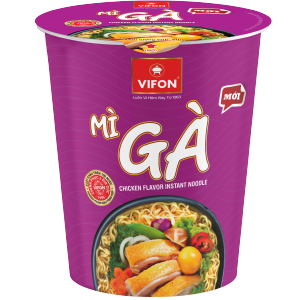 Hương vị mì gà thơm ngon kết hợp với sợi mì dai dai, cùng với nước súp đậm đà và gói rau tạo nên ly mì thơm ngon hấp dẫn.