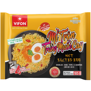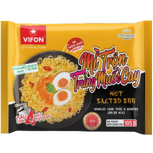 Mì Trộn Trứng Muối Cay VIFON được sản xuất theo công nghệ hiện đại, vị Trứng muối cay thơm ngon, 1 chút vị béo của bơ hòa quyện cùng sợi mì to tròn, dai trơn, sản phẩm không phẩm màu tổng hợp, cùng nhiều topping sẽ mang đến cho bạn bữa ăn nhiều dinh dưỡng!